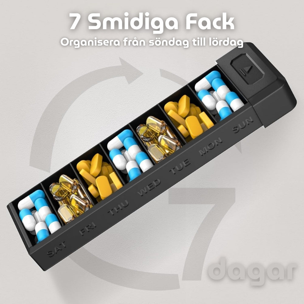Smidig åtkomst: Skjut ut pillerasken till facket för önskad dag och tabletterna är lättillgängliga.
